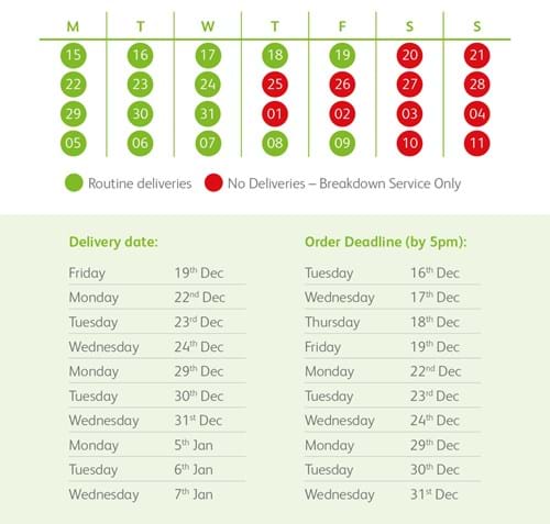 As we approach the Christmas period, we want to highlight that there will be some changes to the delivery schedules.